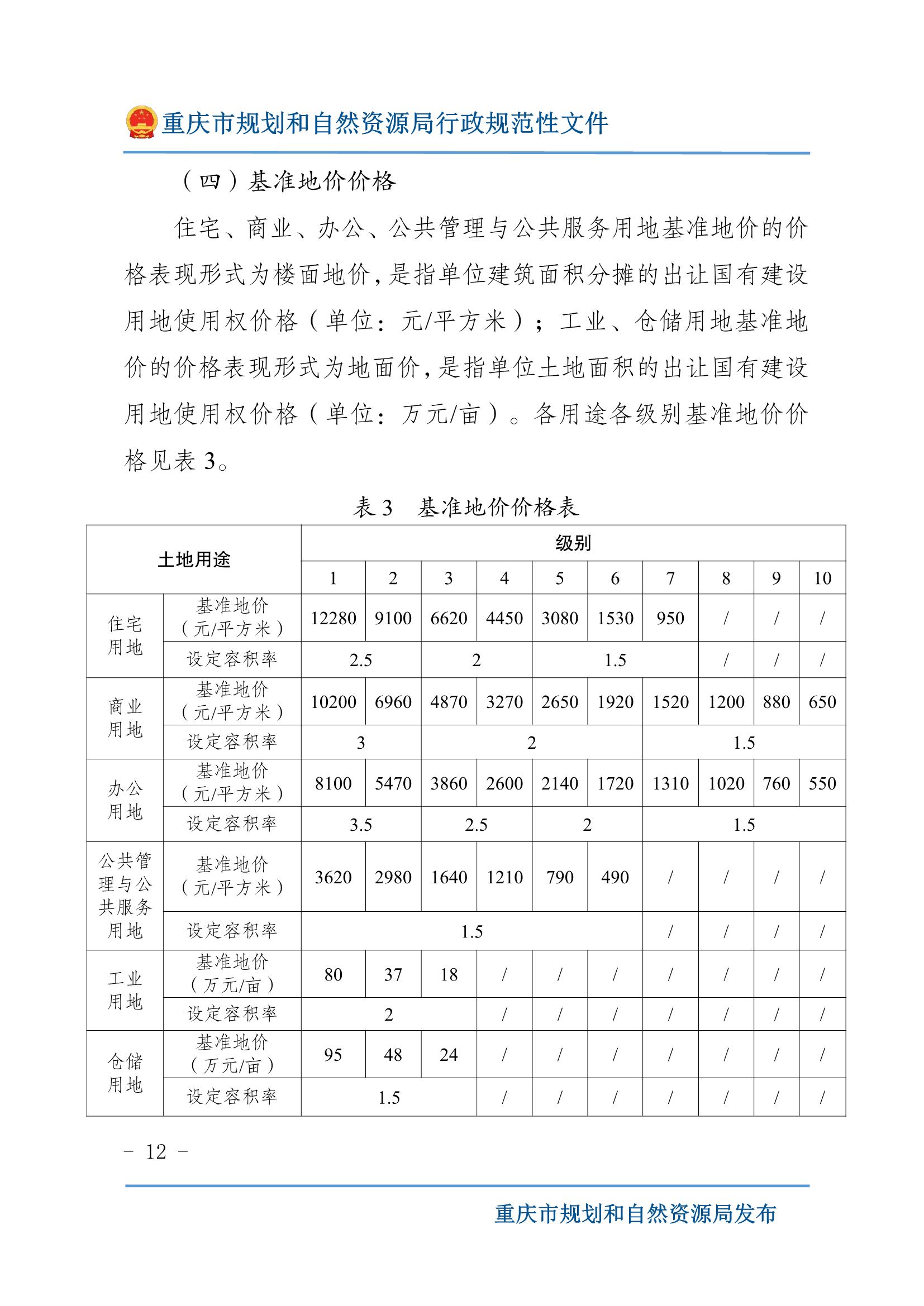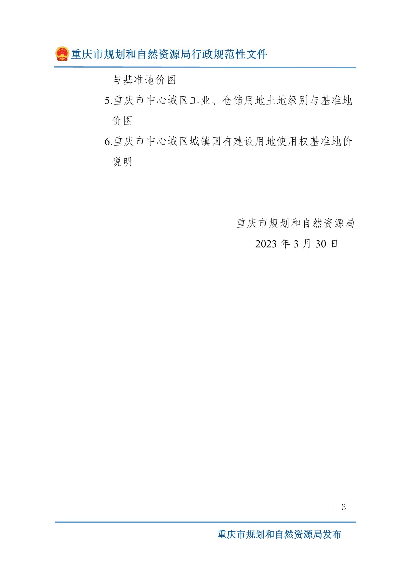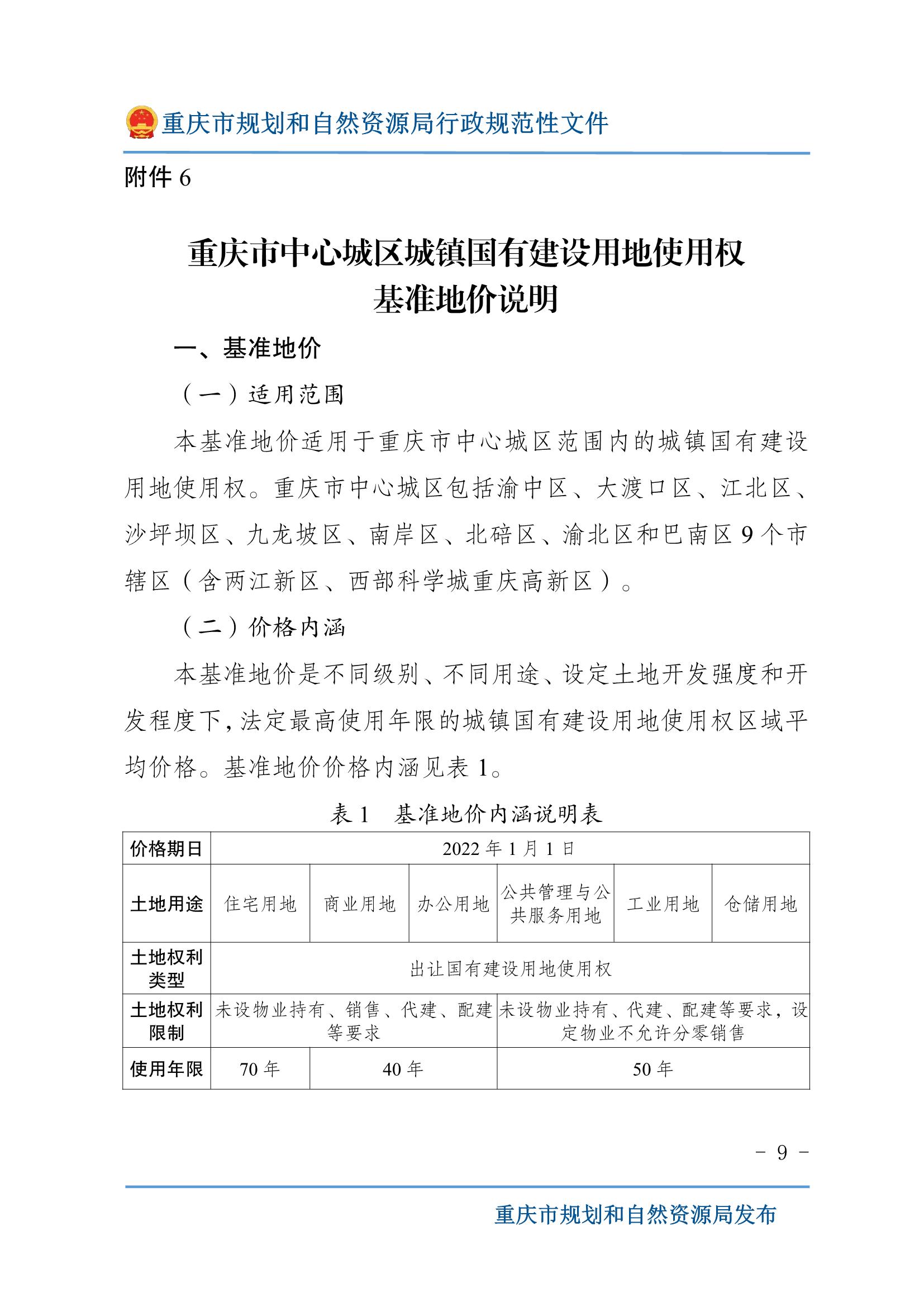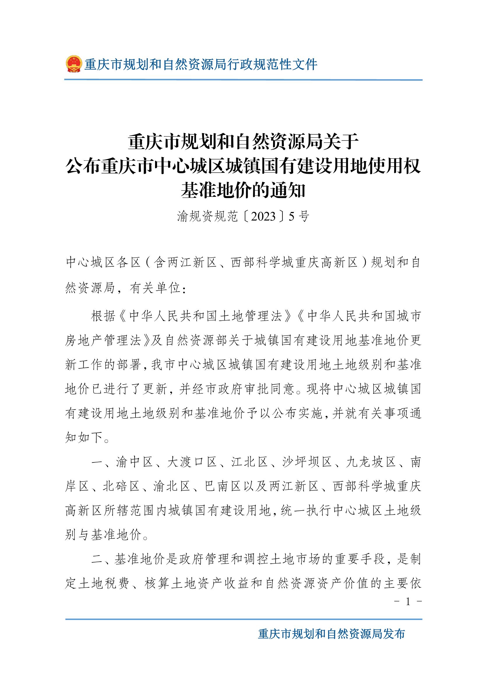 重庆市规划和自然资源局关于公布重庆市中心城区城镇国有建设用地使用权基准地价的通知