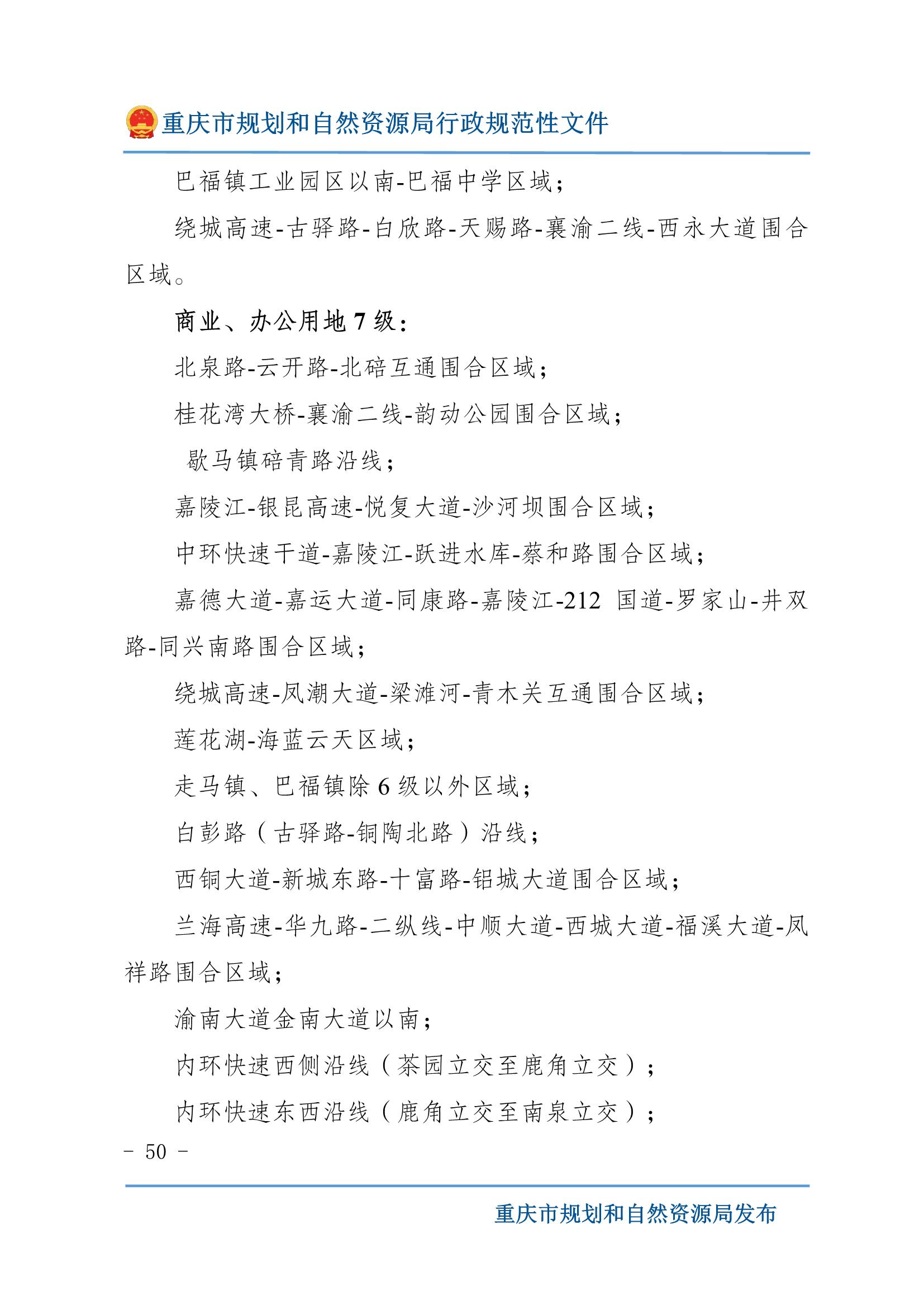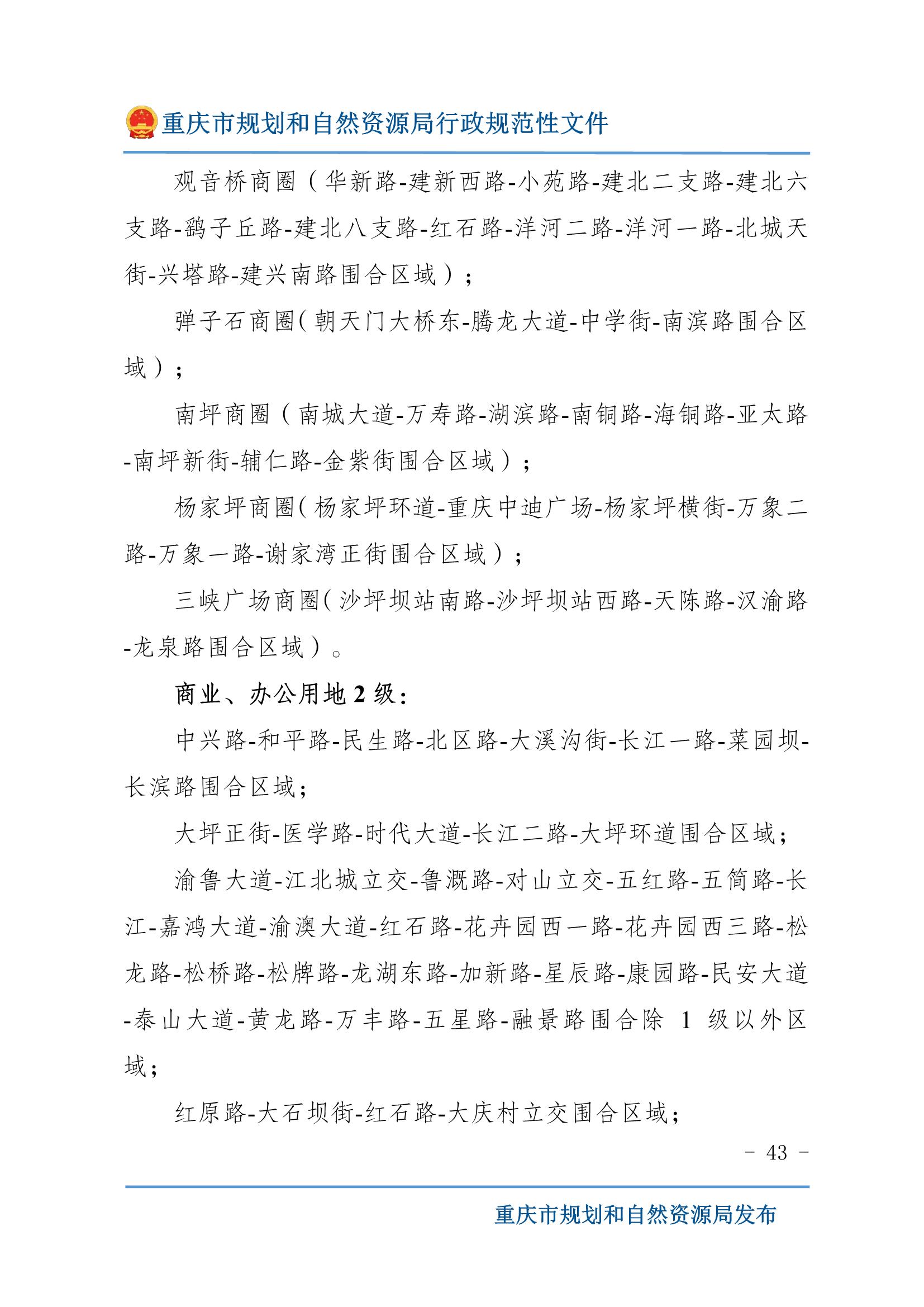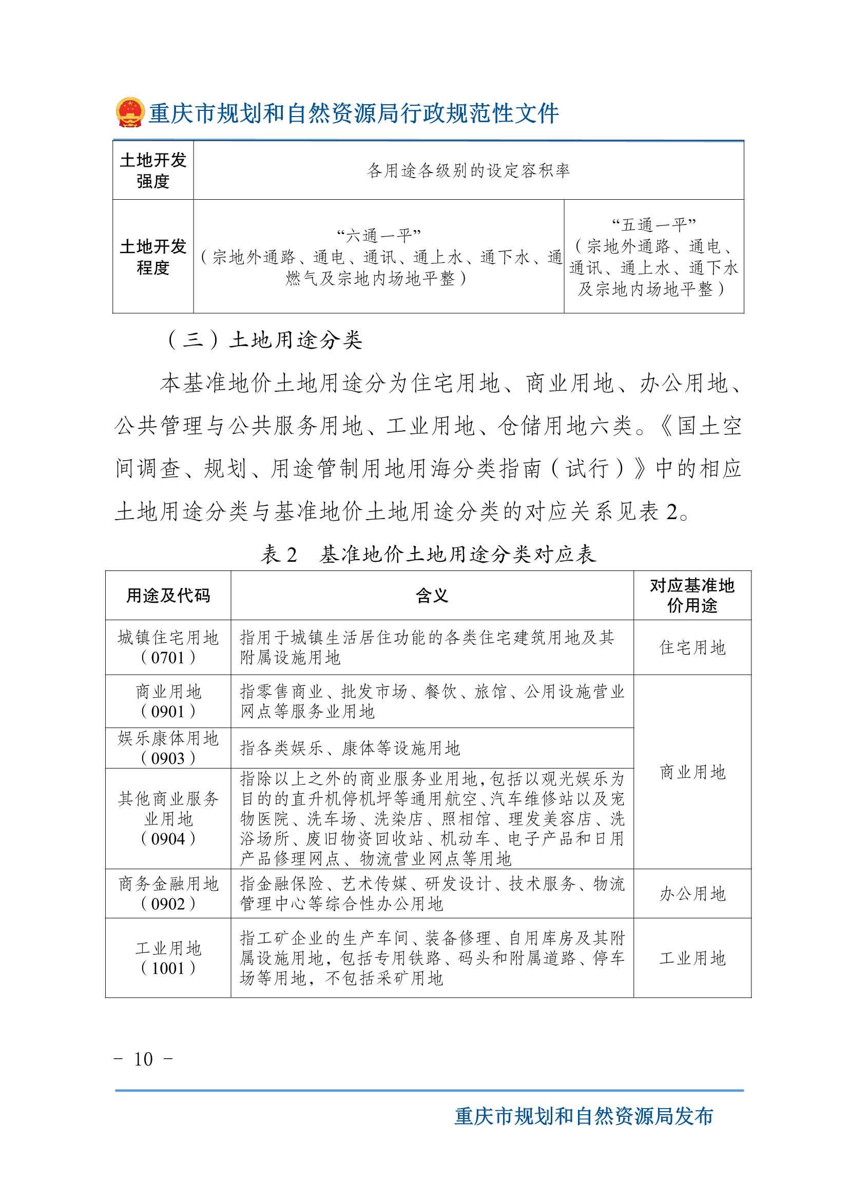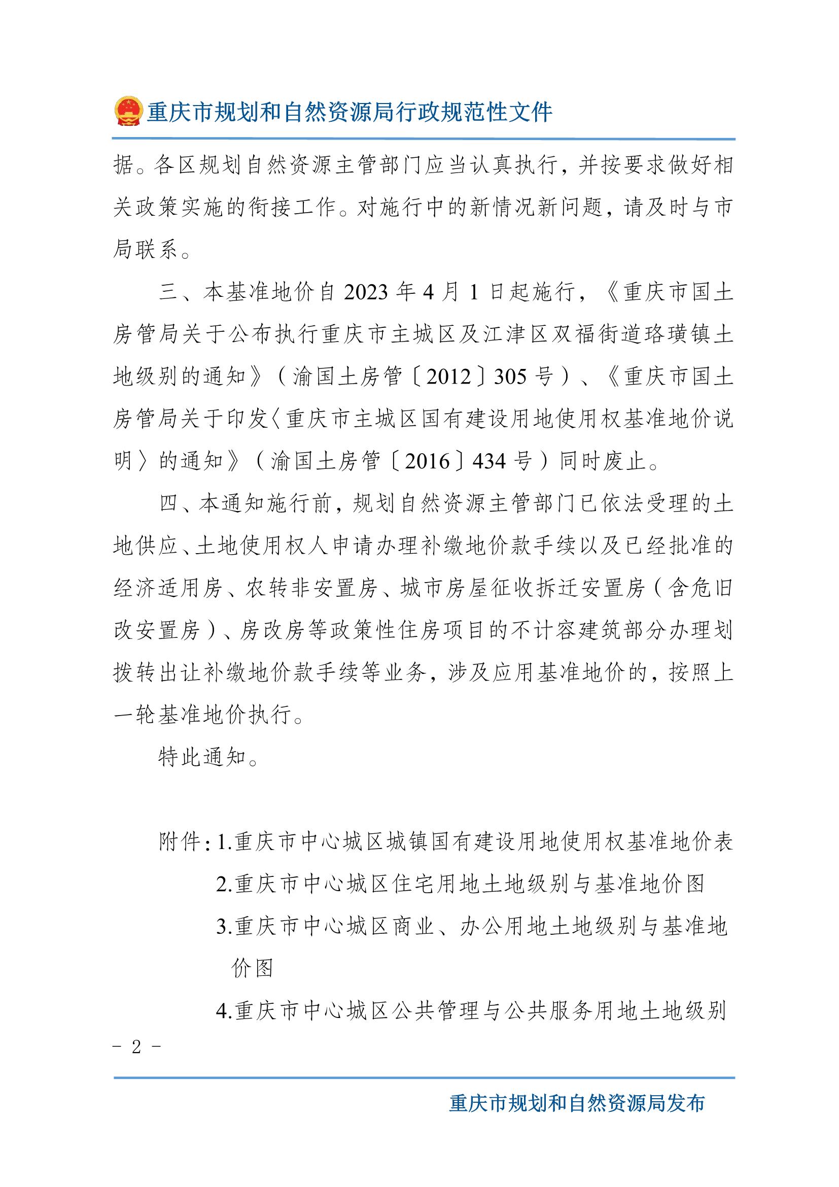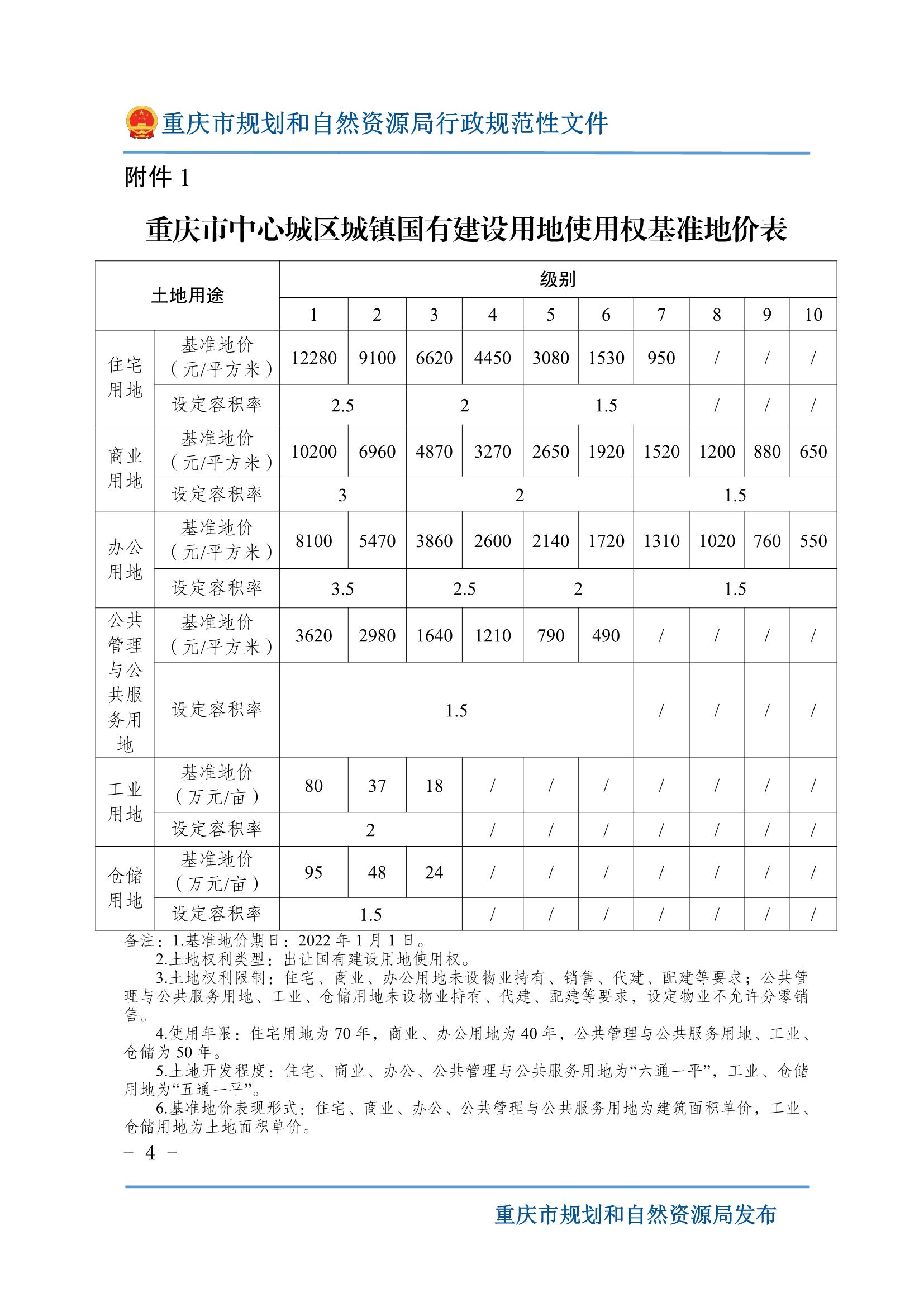 重庆市规划和自然资源局关于公布重庆市中心城区城镇国有建设用地使用权基准地价的通知