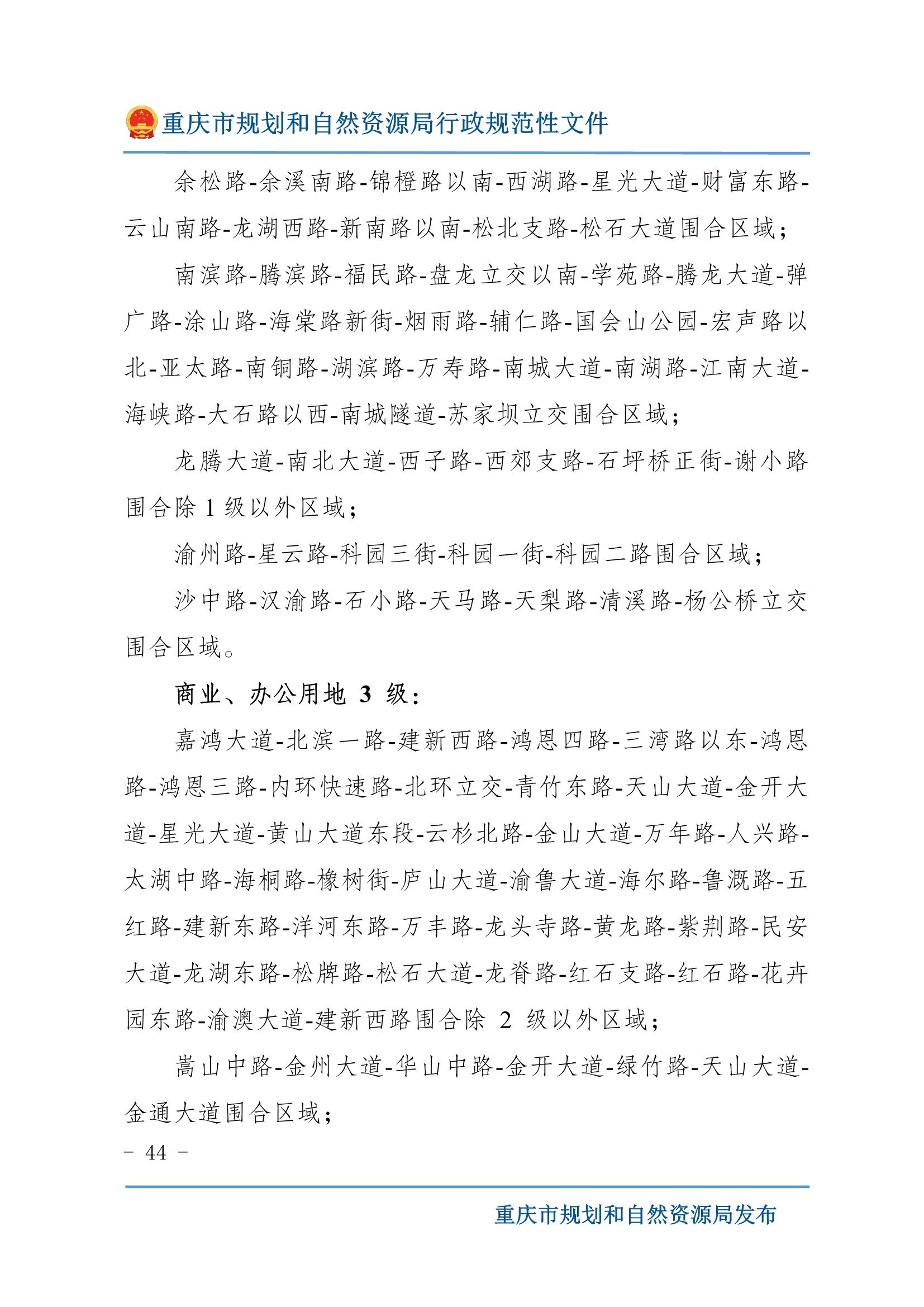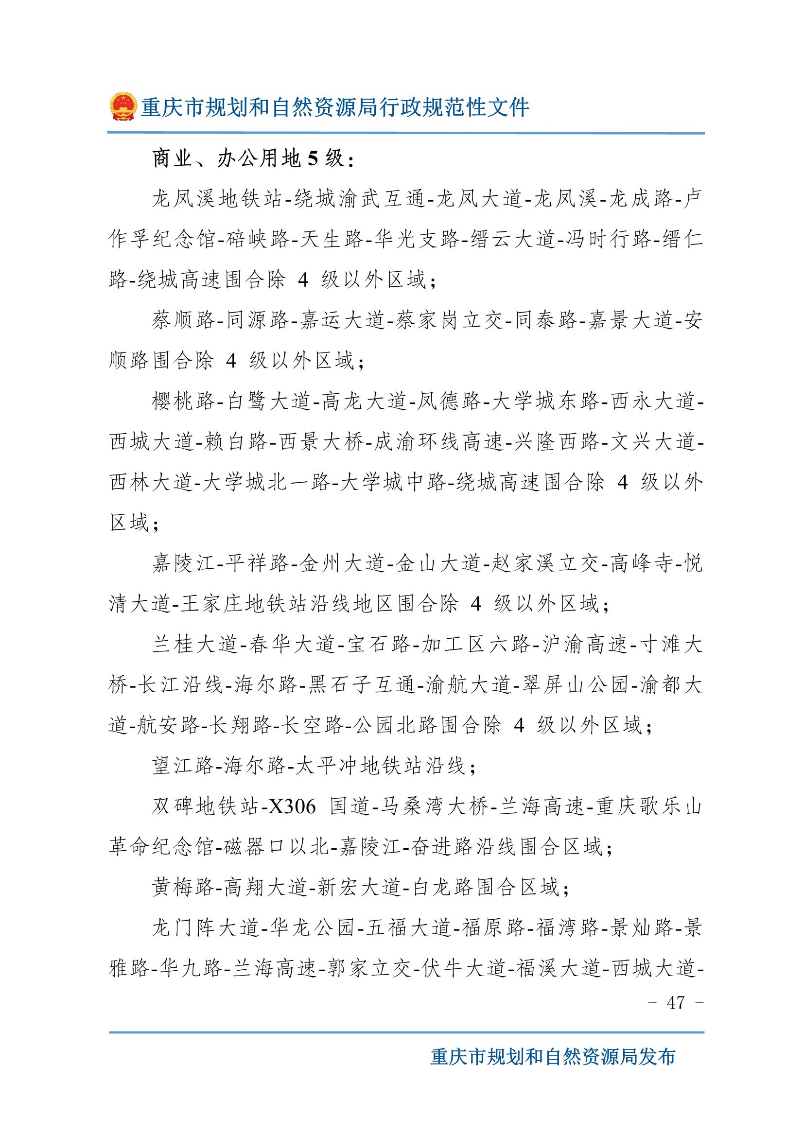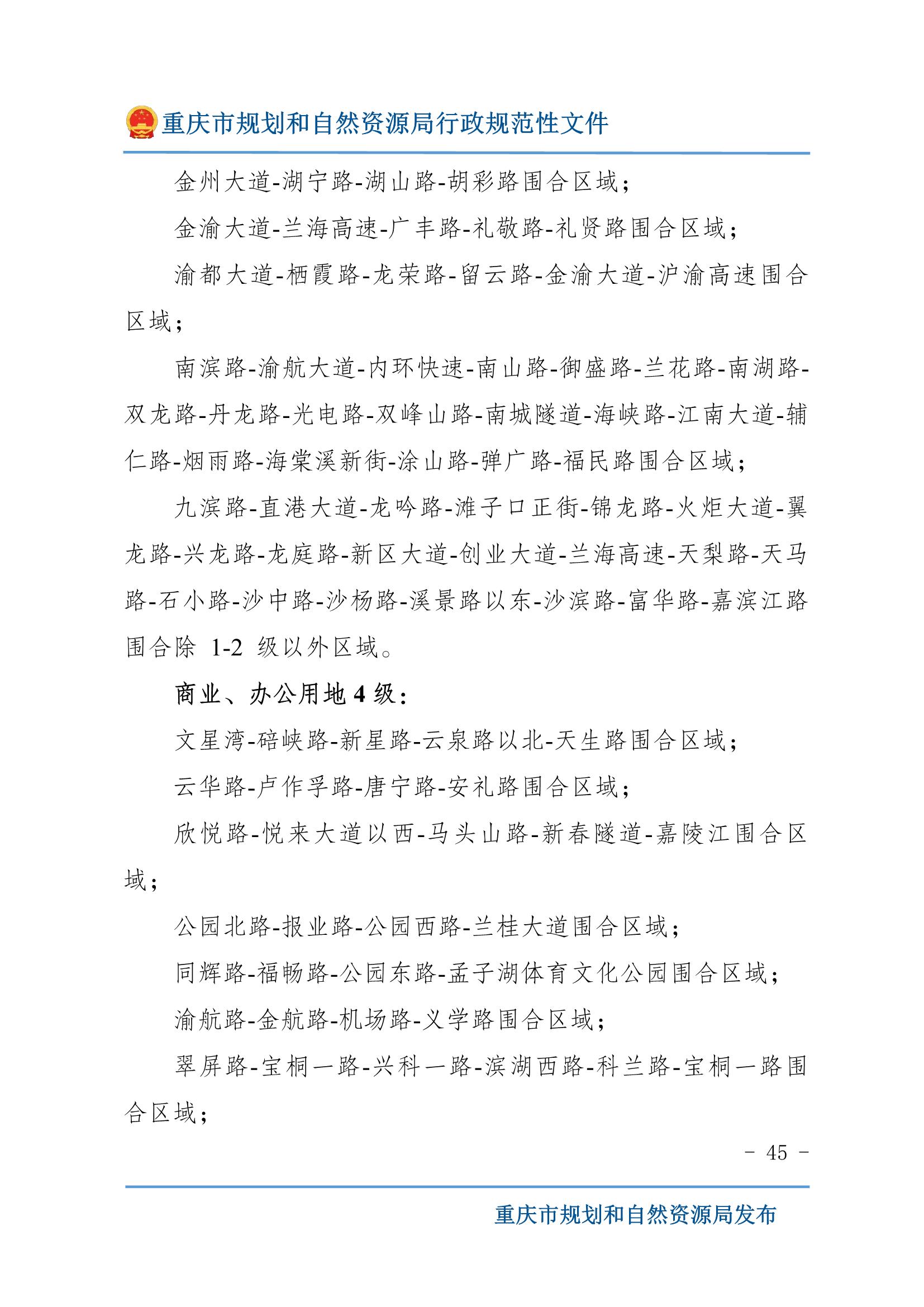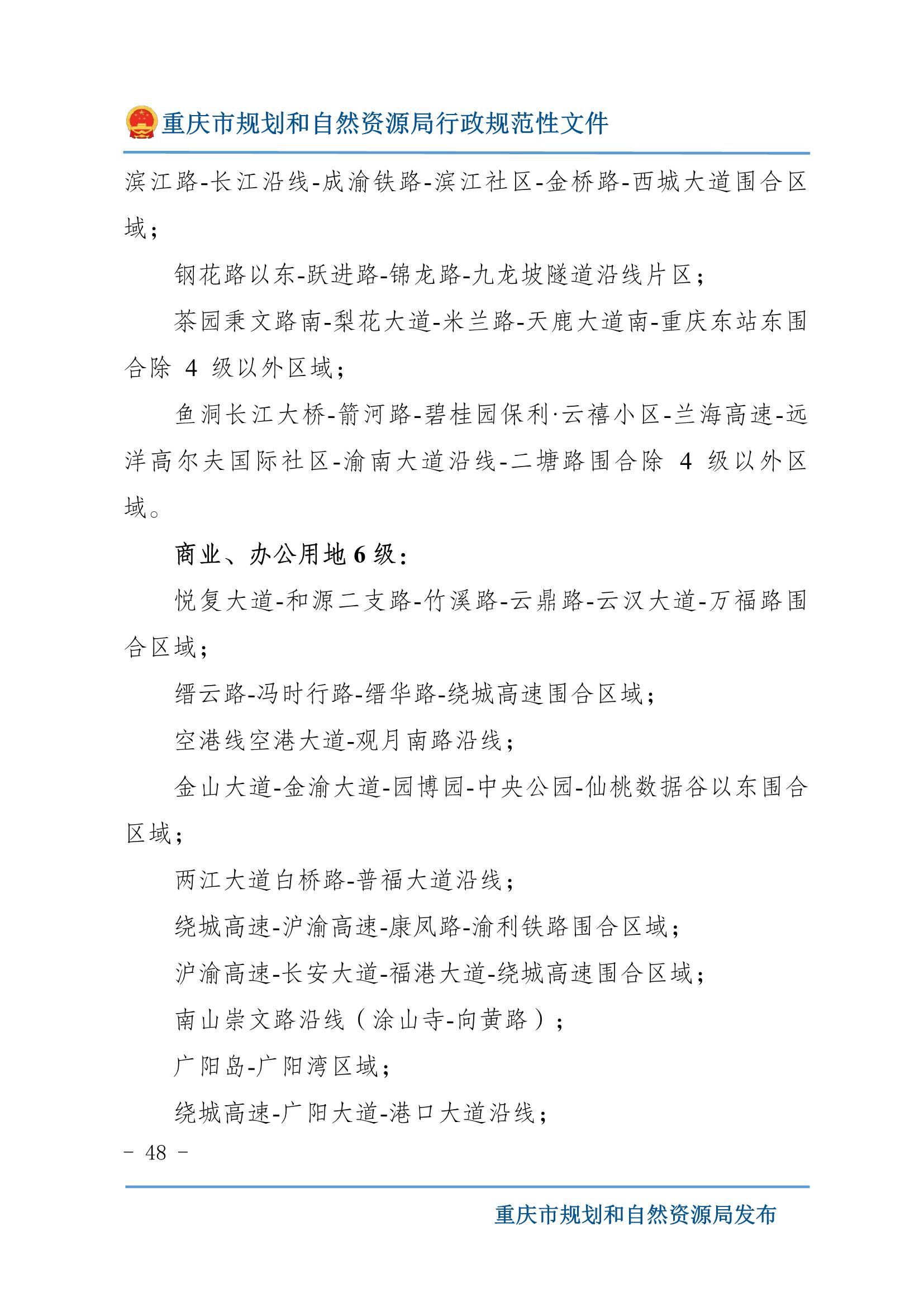 重庆市规划和自然资源局关于公布重庆市中心城区城镇国有建设用地使用权基准地价的通知