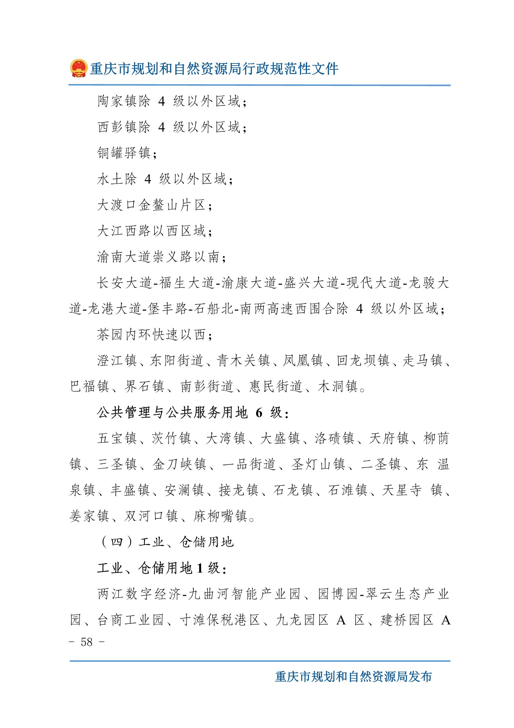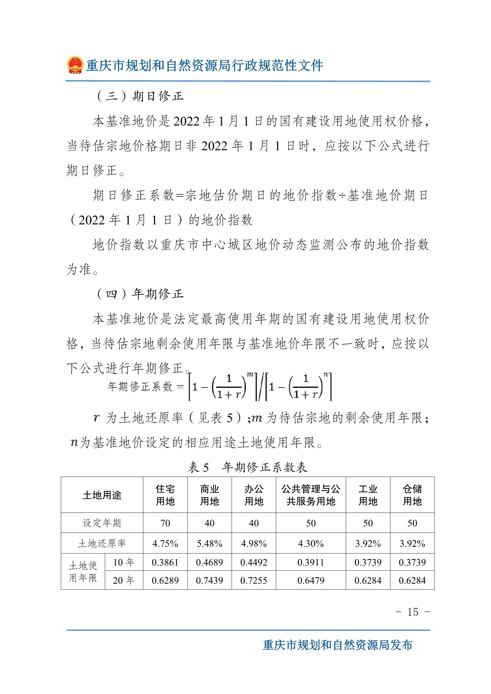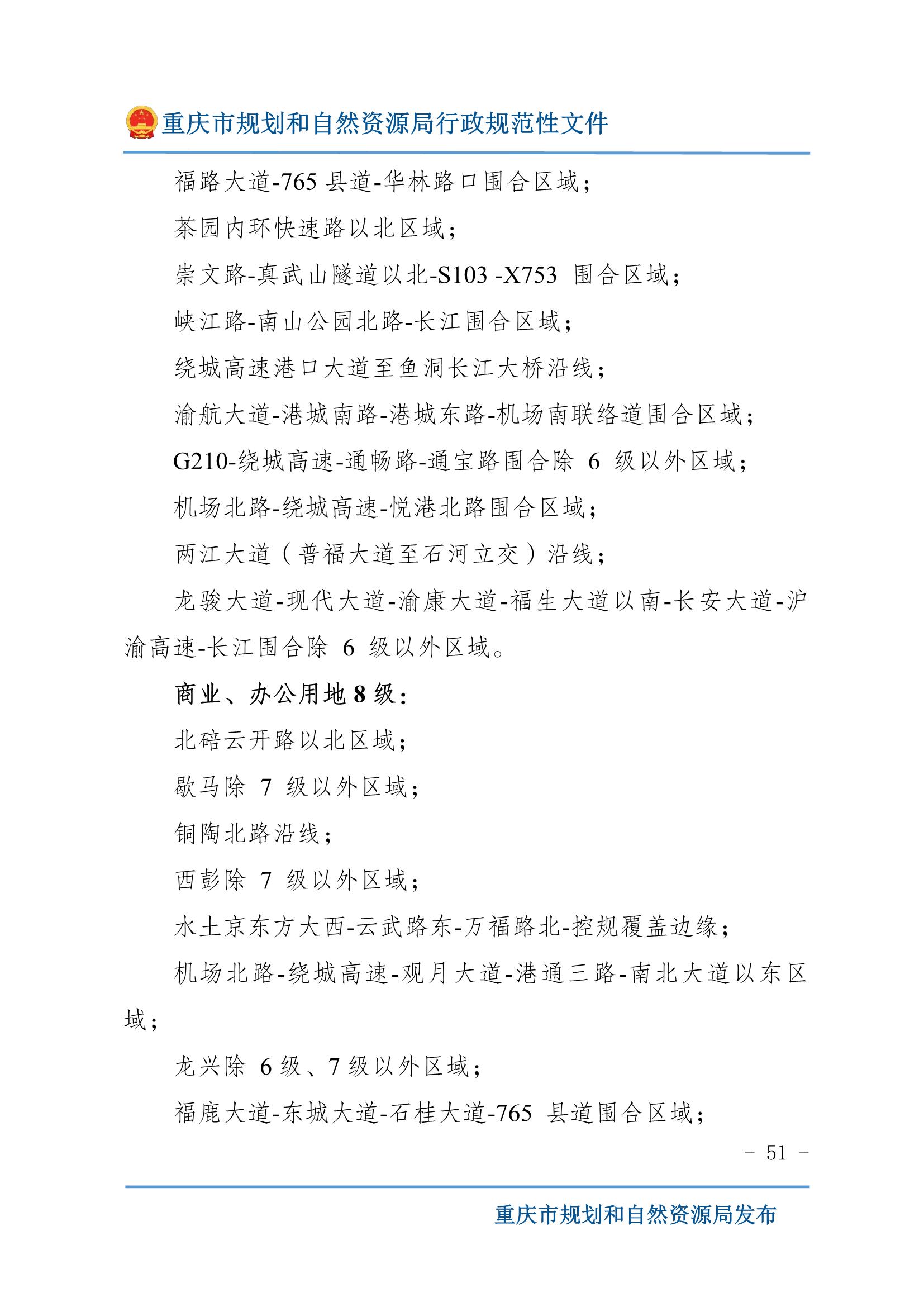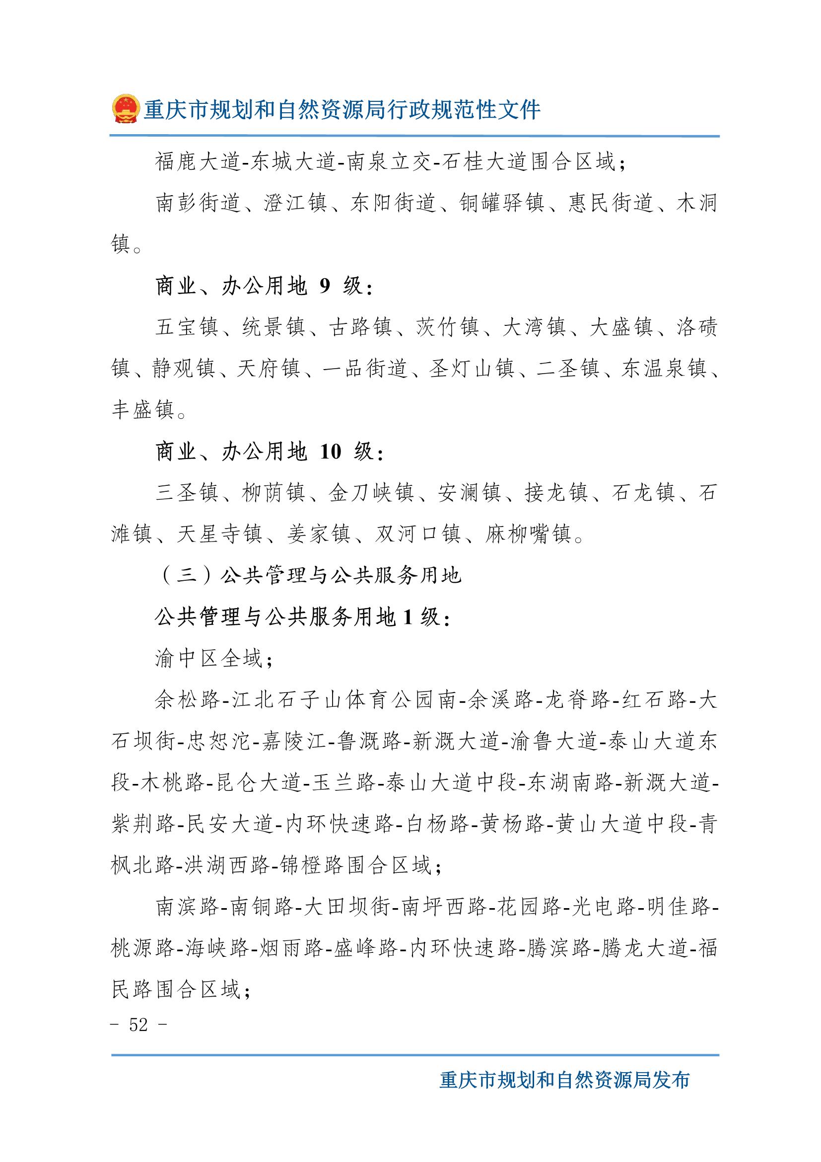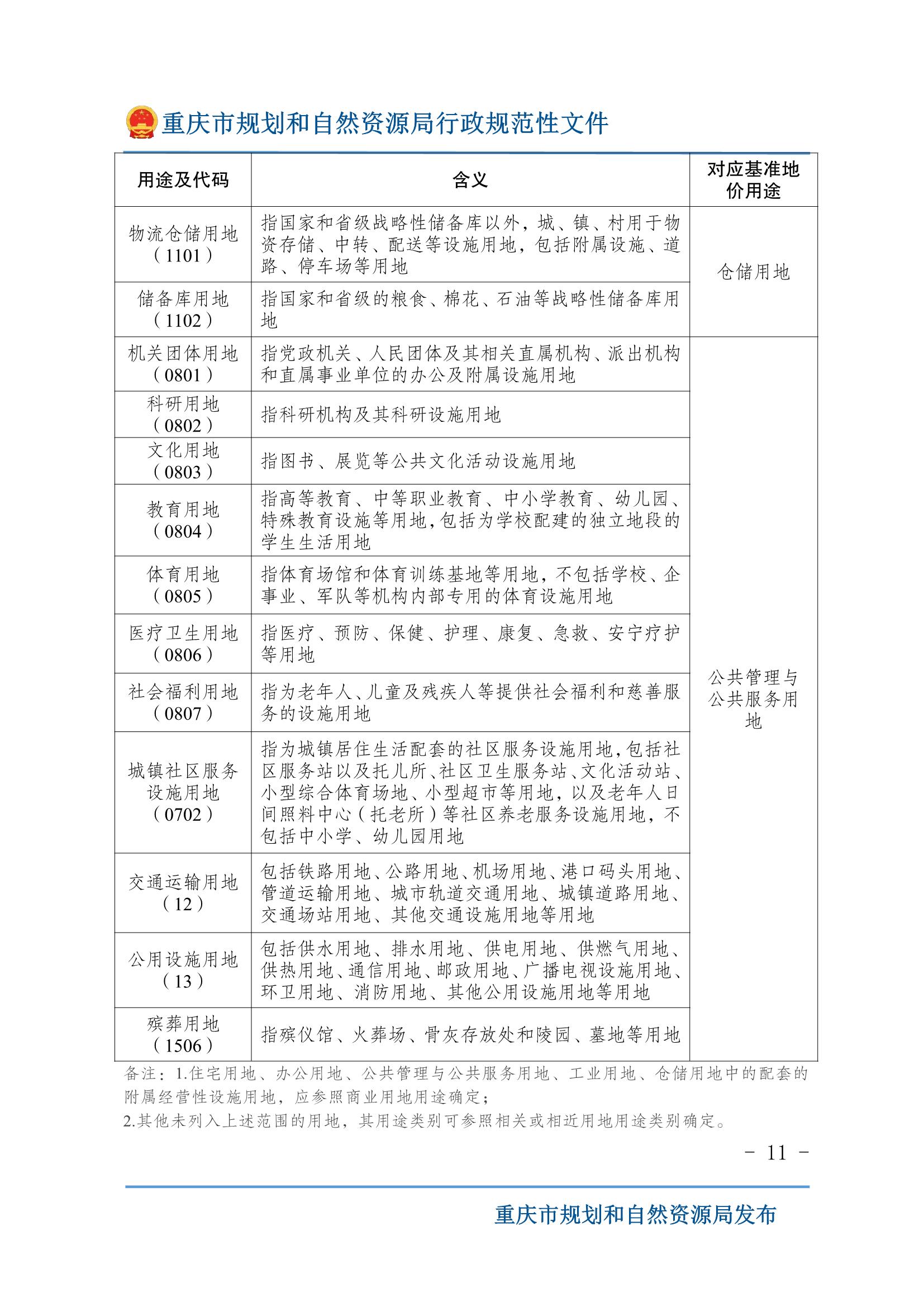 重庆市规划和自然资源局关于公布重庆市中心城区城镇国有建设用地使用权基准地价的通知