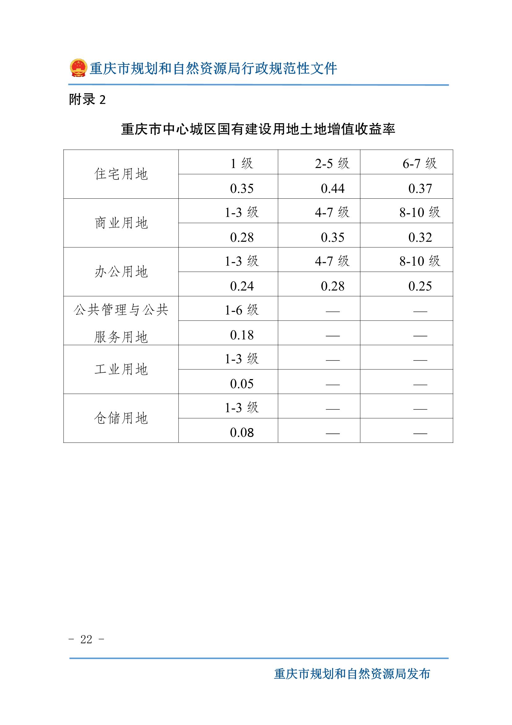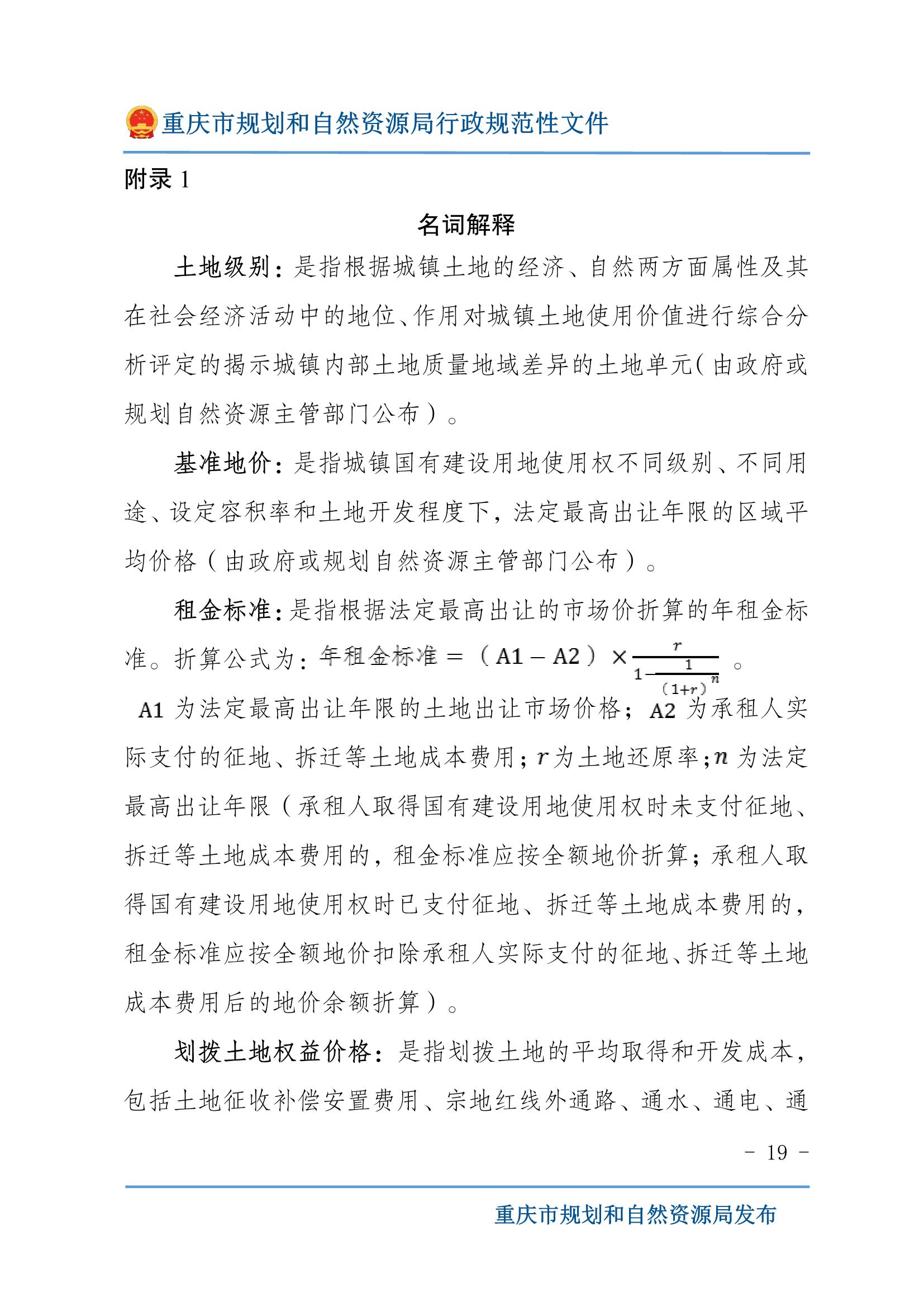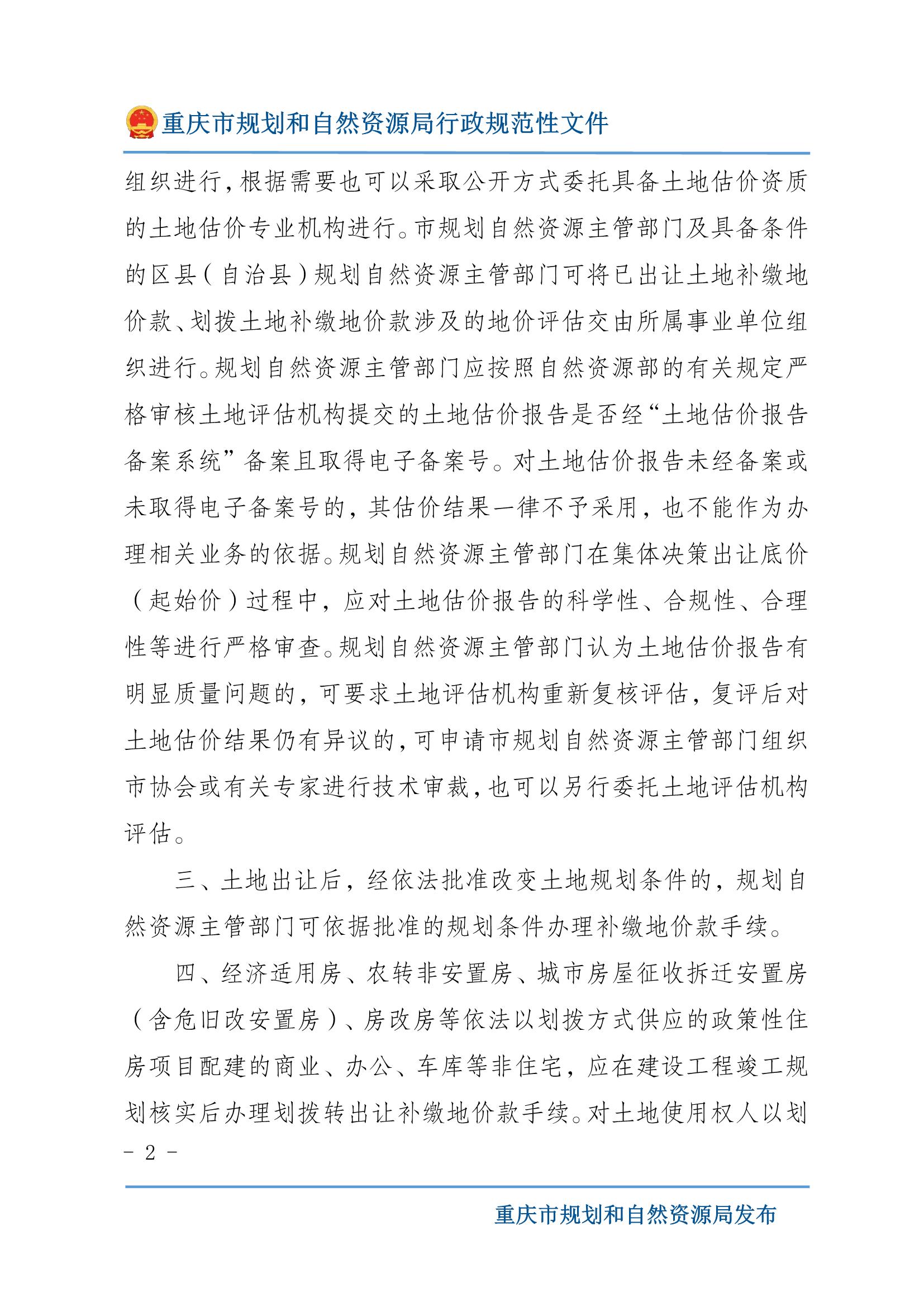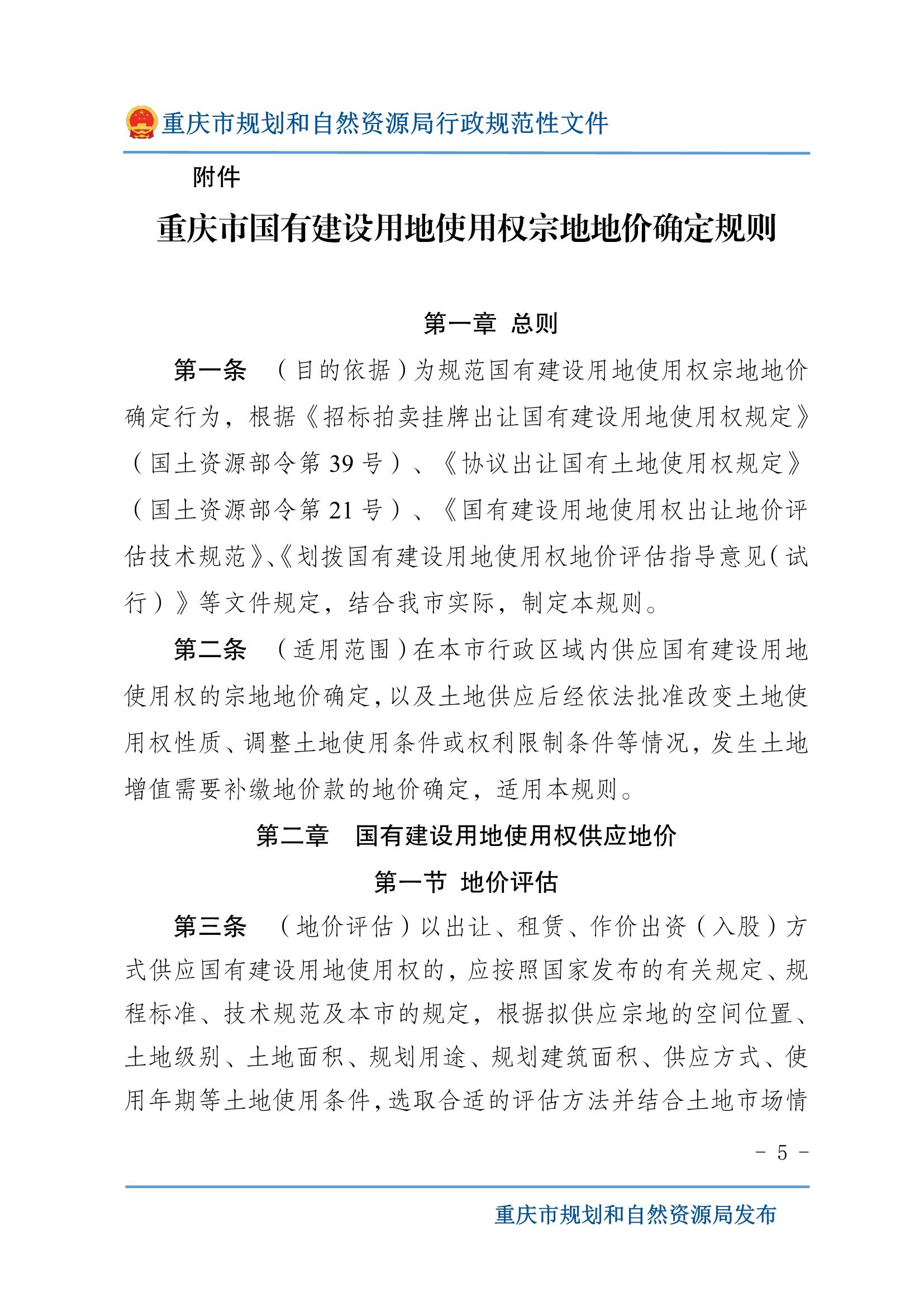 重庆市规划和自然资源局关于印发重庆市国有建设用地使用权宗地地价确定规则的通知