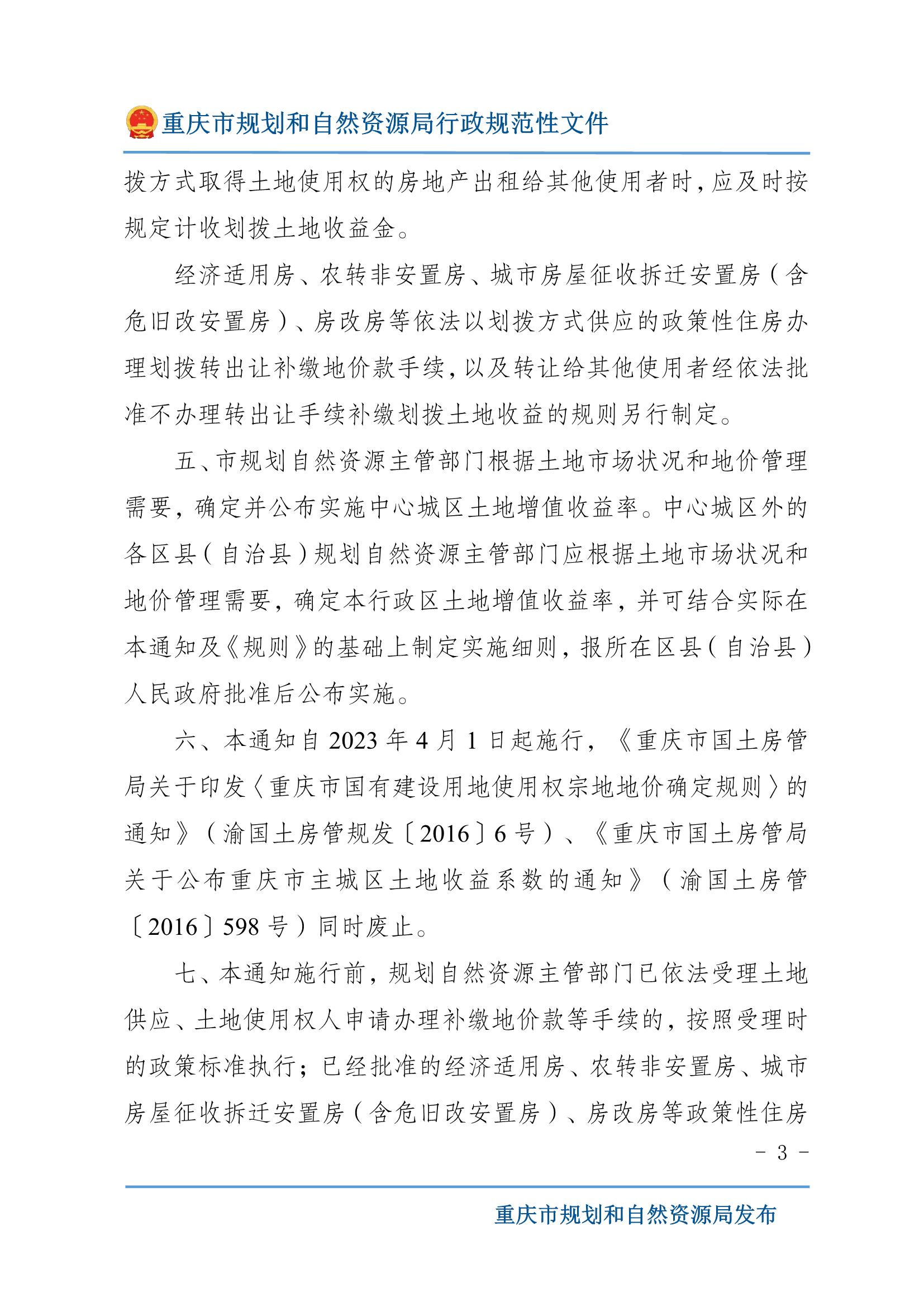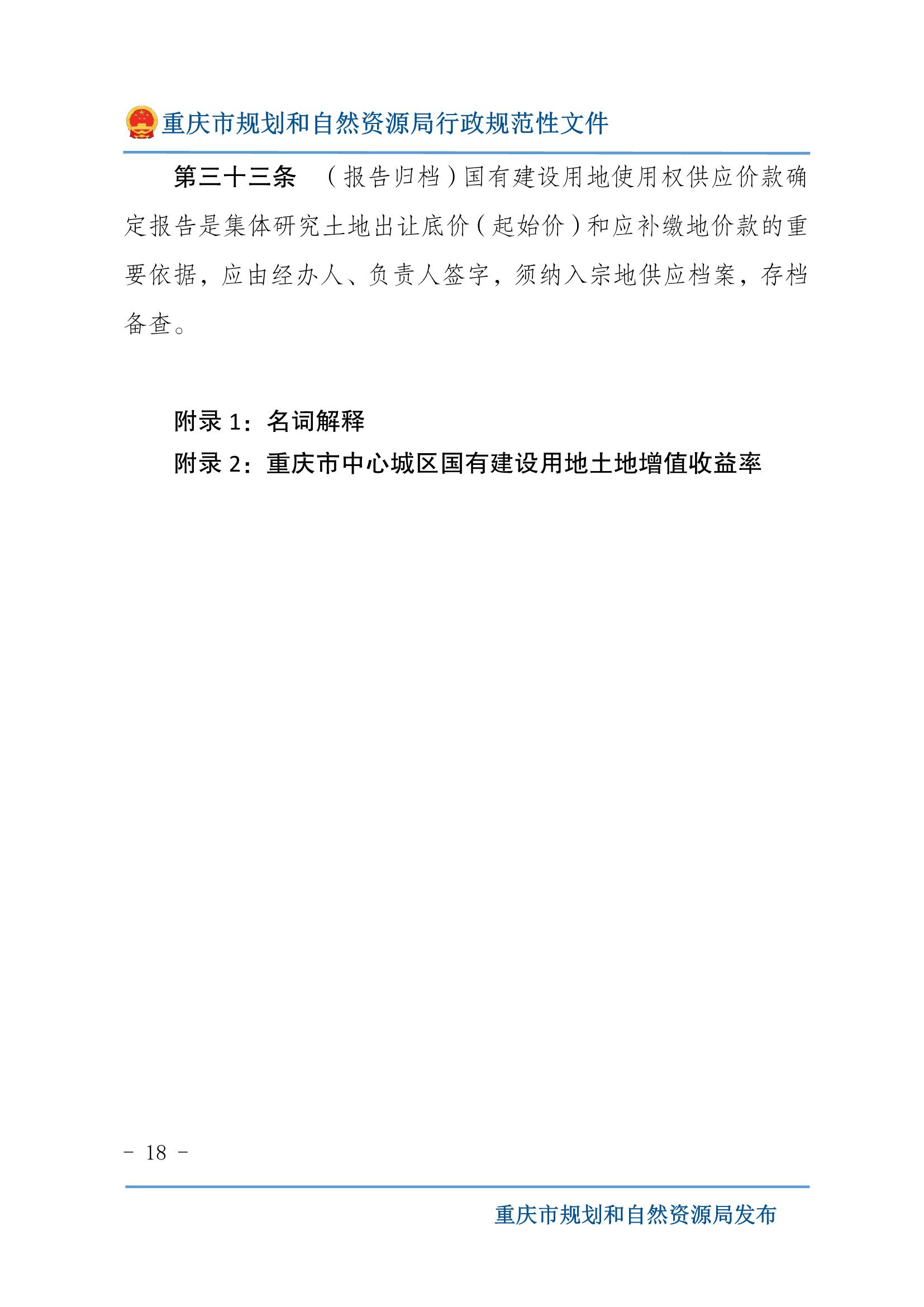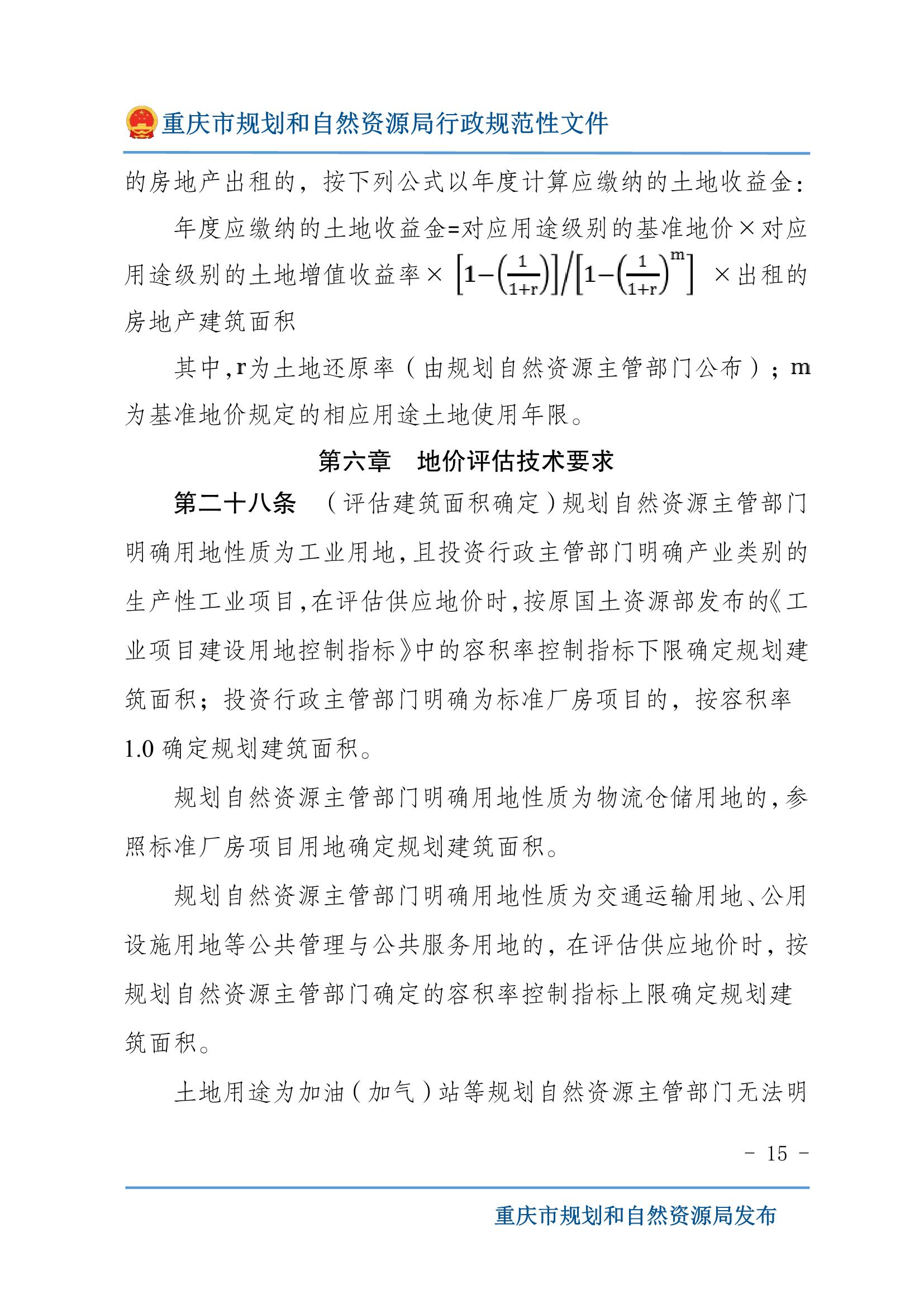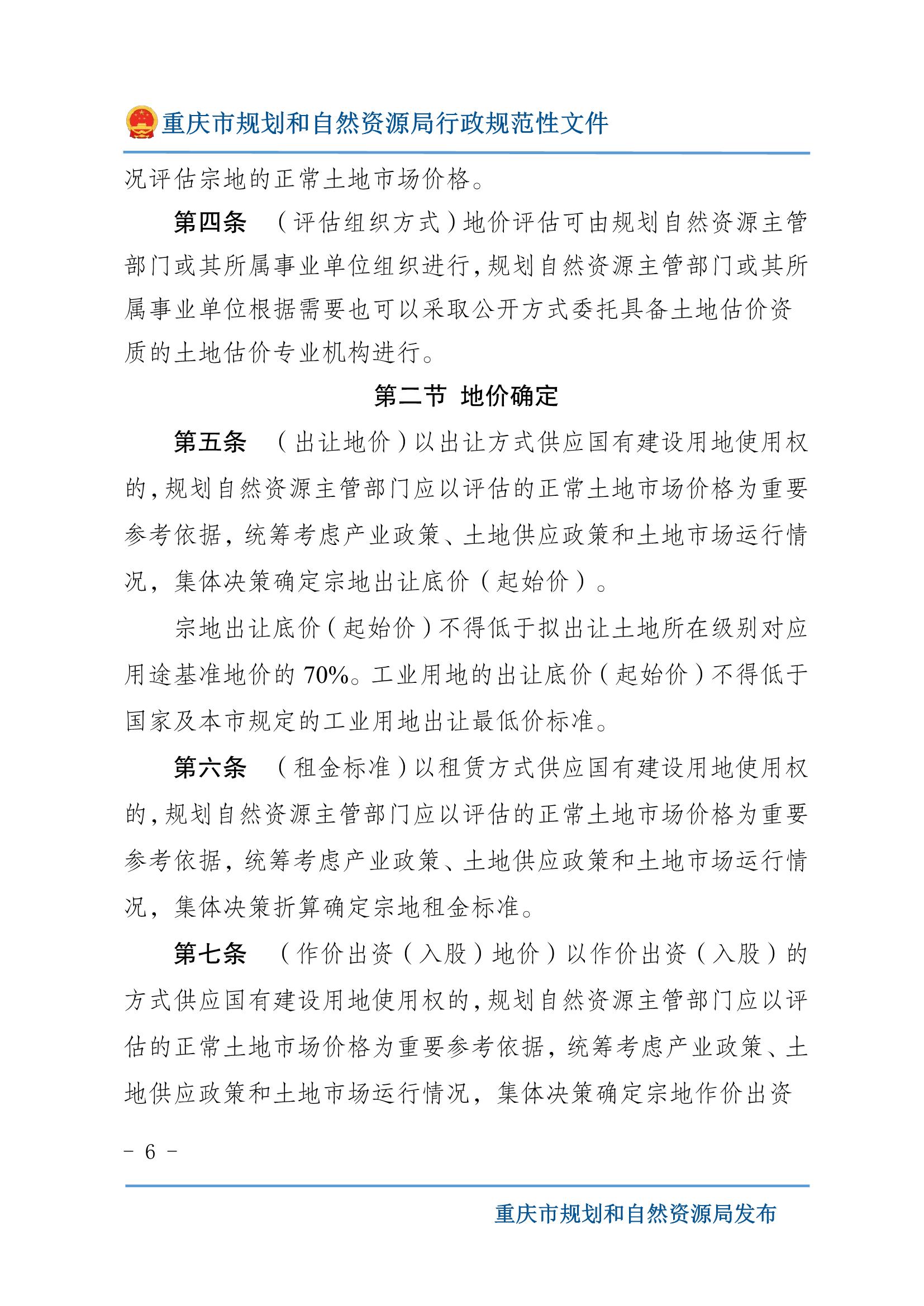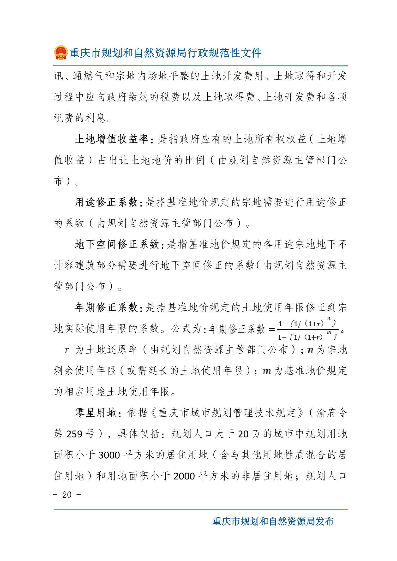 重庆市规划和自然资源局关于印发重庆市国有建设用地使用权宗地地价确定规则的通知