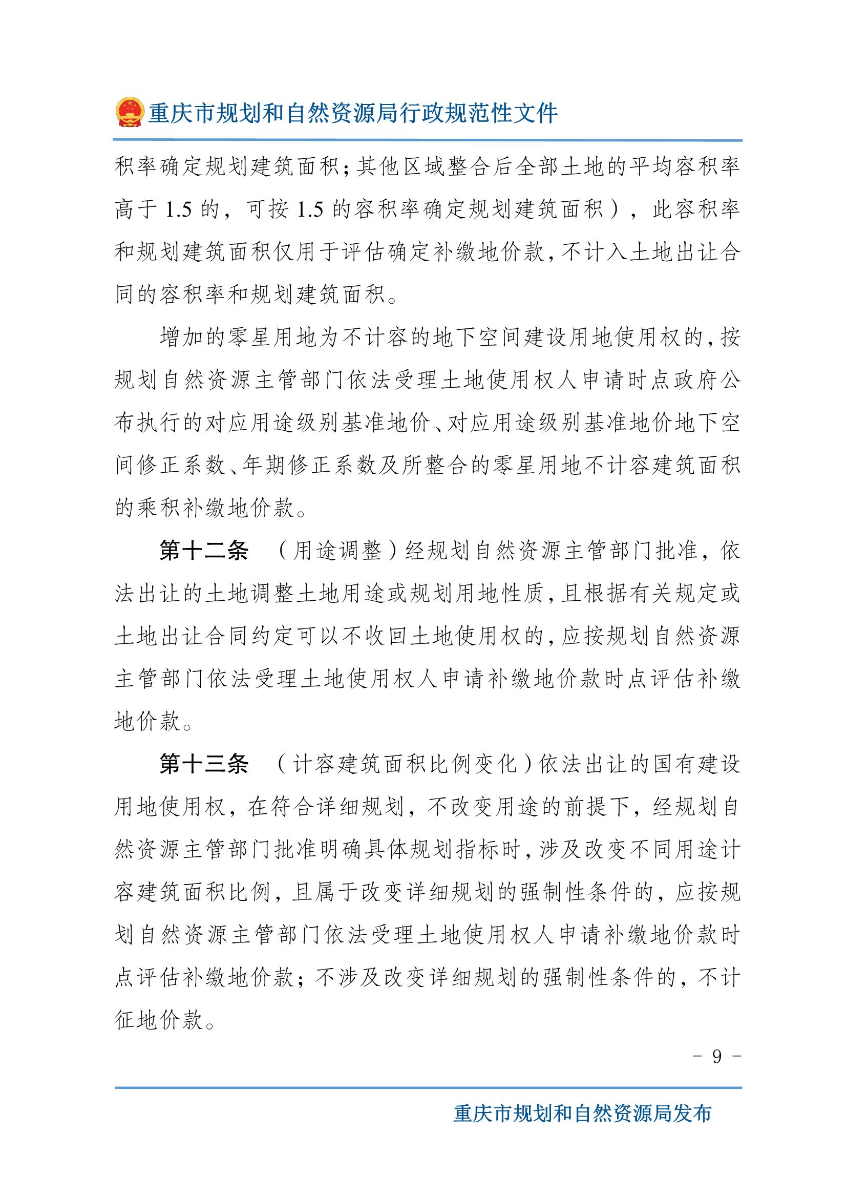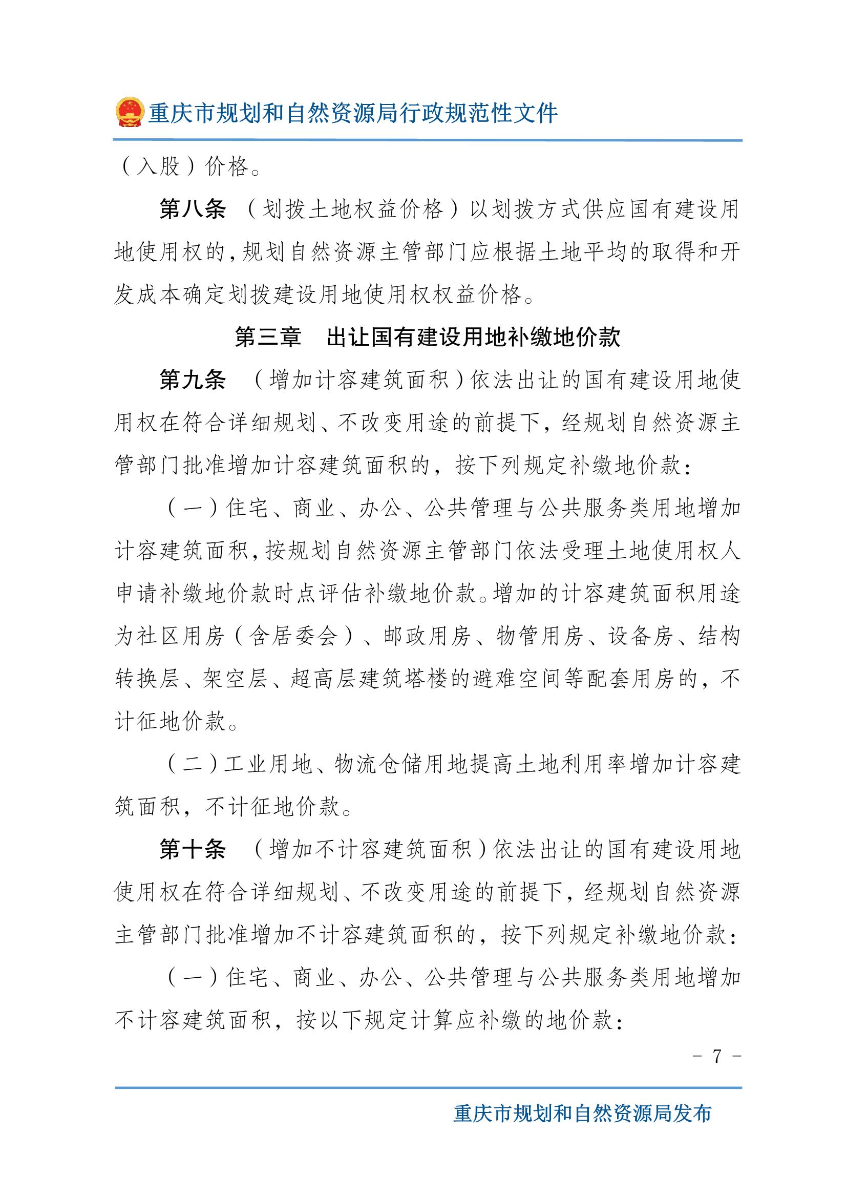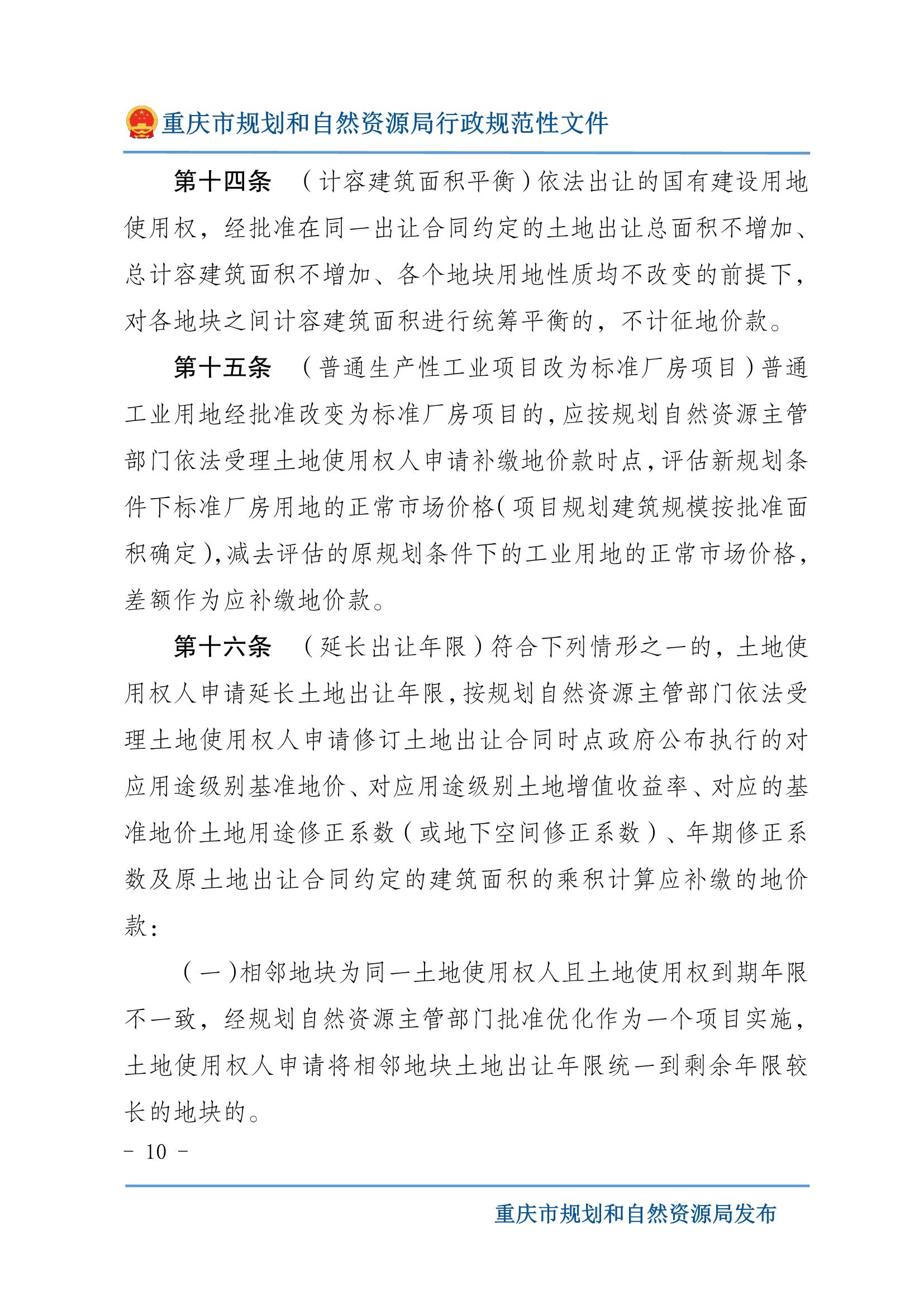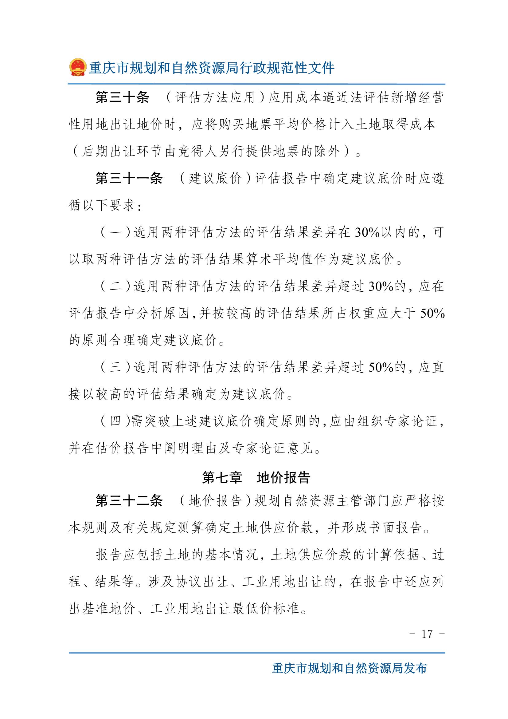 重庆市规划和自然资源局关于印发重庆市国有建设用地使用权宗地地价确定规则的通知